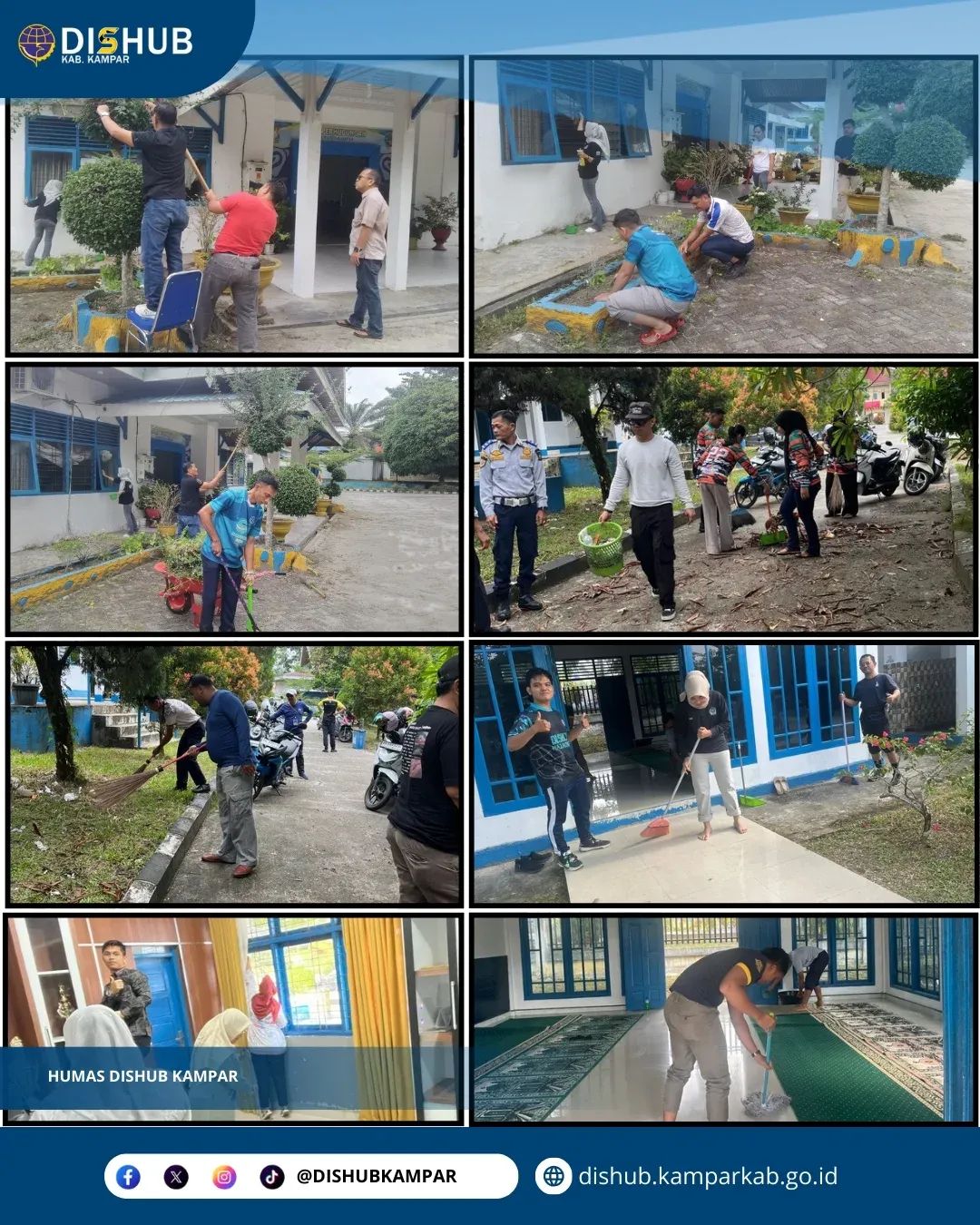 BANGKINANG – Kepala Dinas Perhubungan Kabupaten Kampar Aidil melalui Sekretaris Dinas Perhubungan Kabupaten Kampar, Elfauzan, mengatakan kegiatan gotong royong yang dilakukan pegawai menjadi bagian dari upaya memperkuat kualitas pelayanan publik sekaligus membangun budaya kerja yang lebih disiplin dan kolaboratif.
